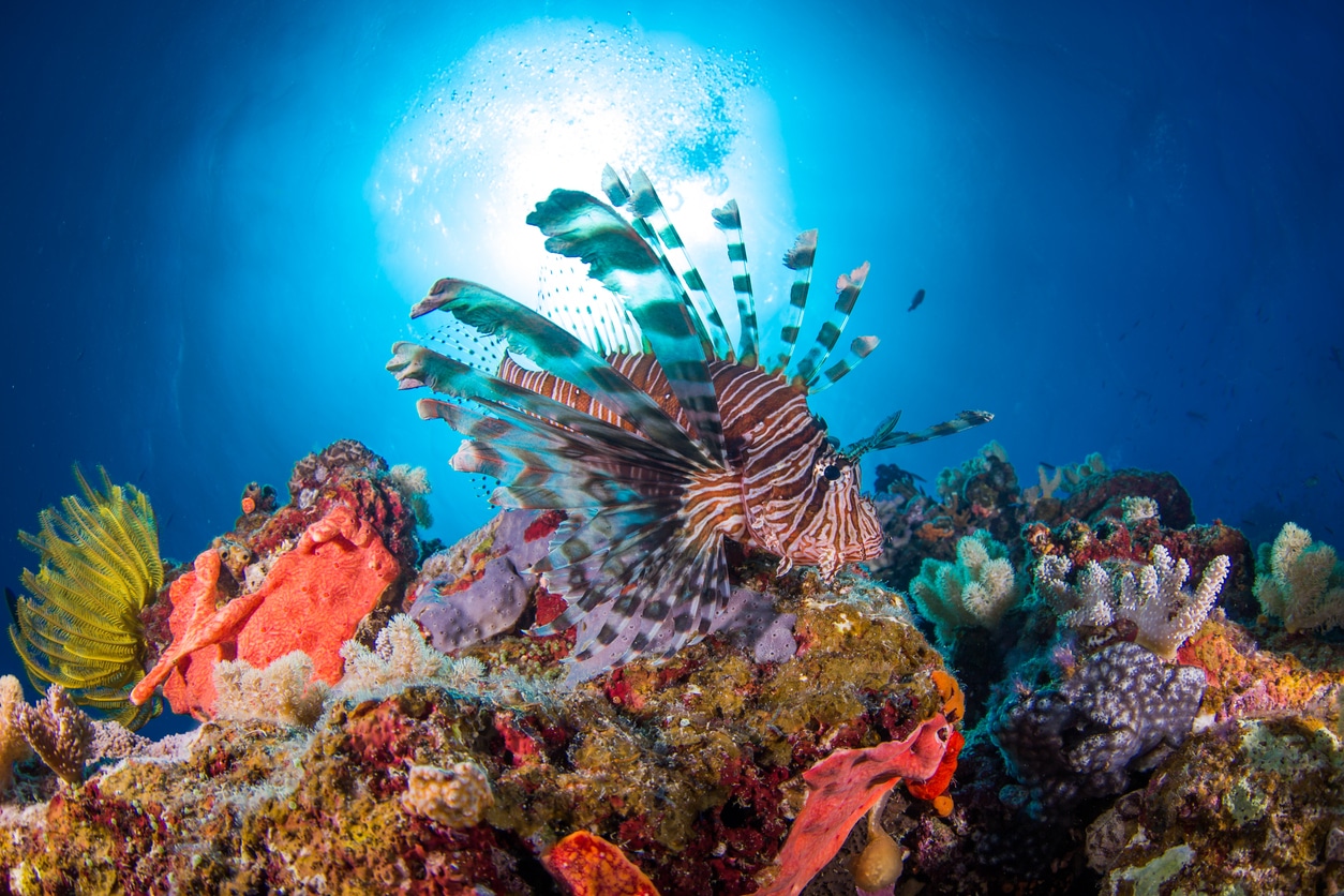 Von den Korallen sind die berühmtesten die Weichkorallen, die das Riff in seiner Farbenpracht erstrahlen lassen. Diese bilden Strukturen wie Gebirge und Hügel auf dem Meeresgrund und ermöglichen so vielen anderen Arten ihren Lebensraum. Die Weichkorallen sind einzigartige Wirbellose mit Tentakeln, die sich an allem festhalten können, was vorbeischwimmt, um ihre Nahrung zu bekommen.