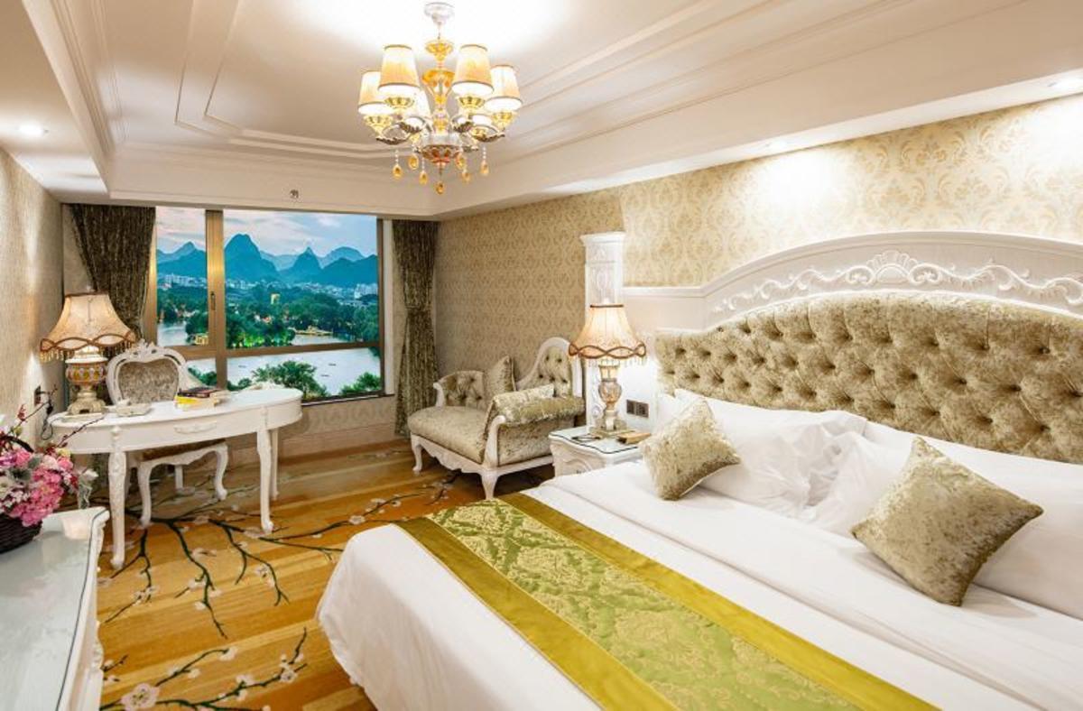 Das stilvolle 4‑ bis 5‑Sterne-Hotel liegt malerisch direkt am Ronghu-See, Teil des bekannten Two Rivers and Four Lakes-Panoramas, und bietet eine ruhige, aber zentrale Ausgangslage für Ihren Aufenthalt in Guilin. In wenigen Gehminuten erreichen Sie das belebte Zentrum mit Einkaufsmöglichkeiten, Restaurants und Sehenswürdigkeiten wie Elephant Trunk Hill oder die Fußgängerzone Zhujiang. Das Hotel besitzt etwa 480 klimatisierte Zimmer vom Standardzimmer bis hin zur großzügigen Suite mit Pool- oder Seeblick. Alle sind hervorragend ausgestattet mit Flachbild-TV, Minibar, Safe, Schreibtisch, Kaffeemaschine oder Teekocher, teilweise eigenem Balkon und modernem Bad inklusive Föhnes und kostenfreier Pflegeprodukte. Zu den Serviceangeboten gehören ein überdachter Innenpool, Sauna, Fitnessraum und Massagen. Mehrere Restaurants und eine Bar bieten lokale, westliche und internationale Küche.