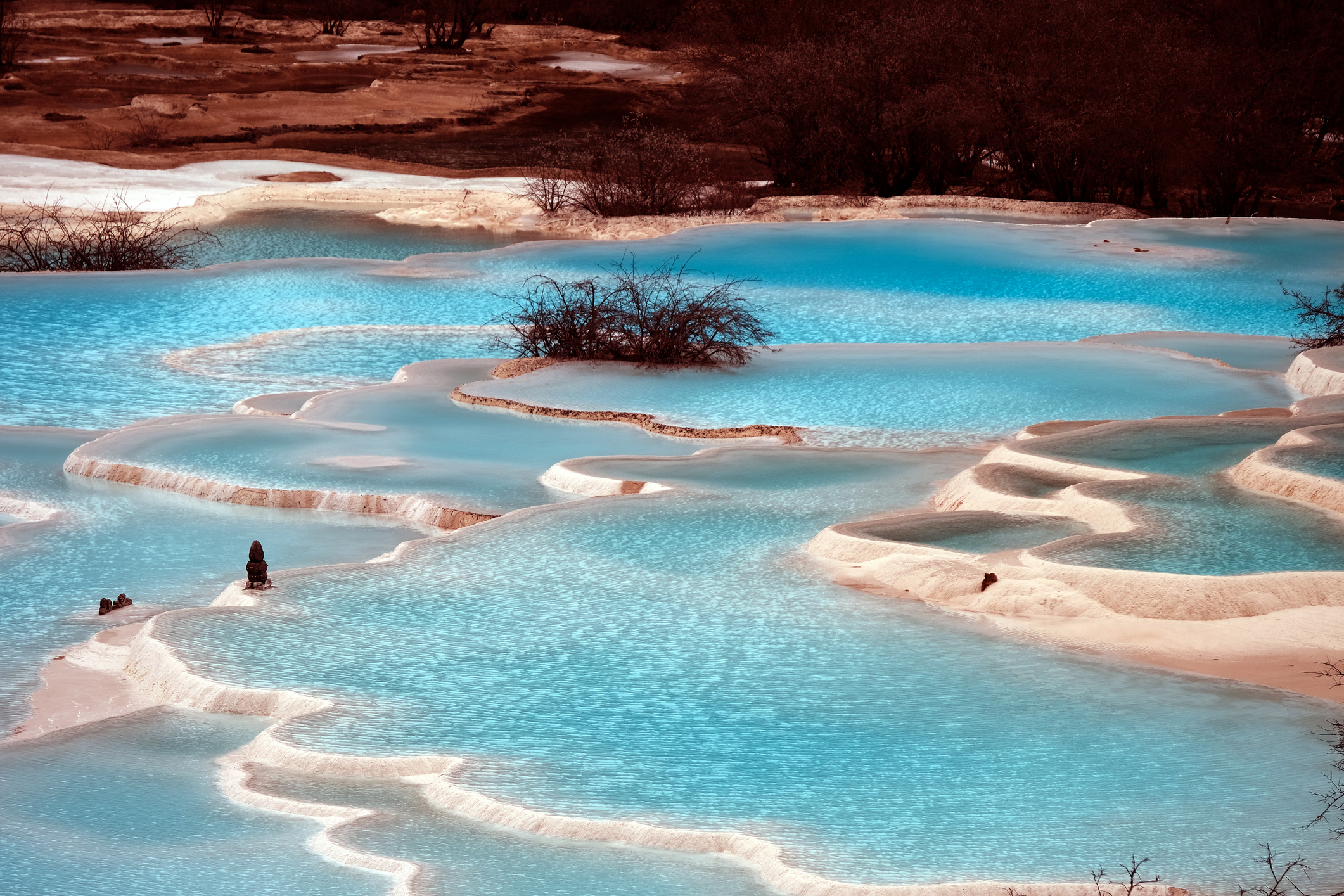 Heute besuchen Sie das faszinierende Naturschutzgebiet Huanglong, das für seine leuchtend türkisfarbenen Kalksinterbecken, kristallklaren Bergquellen und eindrucksvollen Hochgebirgslandschaften bekannt ist. Die farbenprächtigen Terrassen ziehen sich wie ein schimmerndes Band durch Wälder und alpine Kulisse und verleihen der Region eine beinahe märchenhafte Atmosphäre.