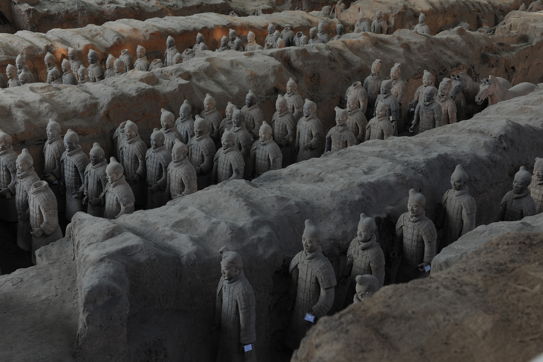 In mehreren riesigen Hallen stehen tausende lebensgroße Tonkrieger, Pferde und Streitwagen – jede Figur mit individuellen Gesichtszügen und einzigartiger Ausrüstung. Die monumentale Anlage vermittelt eindrucksvoll die Macht und den Einfluss des ersten geeinten chinesischen Reiches.