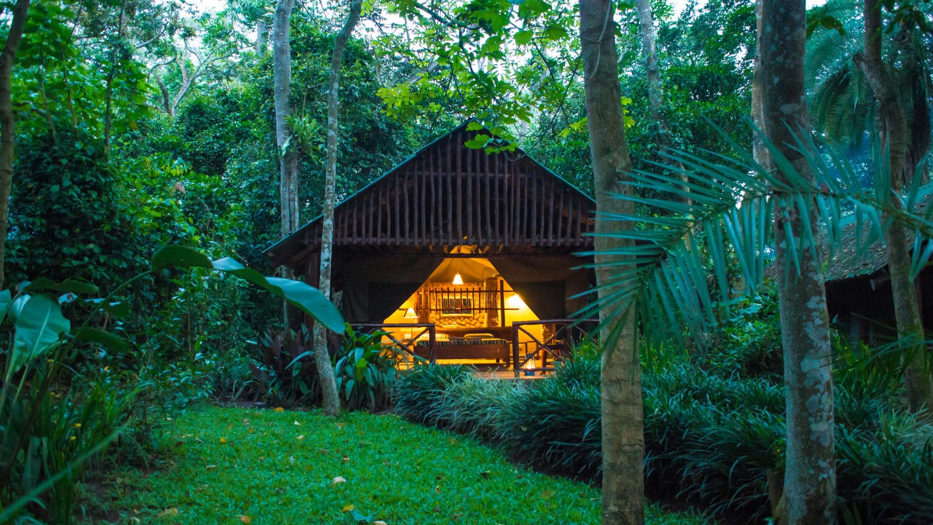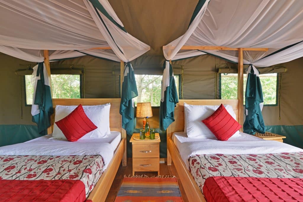 Das Zeltcamp Kibale Forest Camp ist wunderschön gelegen mitten in einem grünen Waldstück, nur 10 Autominuten entfernt vom Kanyanchu Visitor Center. 12 afrikanische Zelte im Safari-Stil laden Sie ein zu Ihrem Abenteuer im Dschungel. Hier entdecken Sie Schimpansen, die sich von einem Baum zum anderen schwingen, einzigartige Schmetterlinge und seltene Vögel. Von Ihrer privaten Terrasse am Zelt können Sie manchmal sogar die schwarz-weißen Stummelaffen beobachten. Jedes Safari-Zelt ist mit einem eigenen Badezimmer, einem Ankleidezimmer und einer Warmwasserdusche ausgestattet.