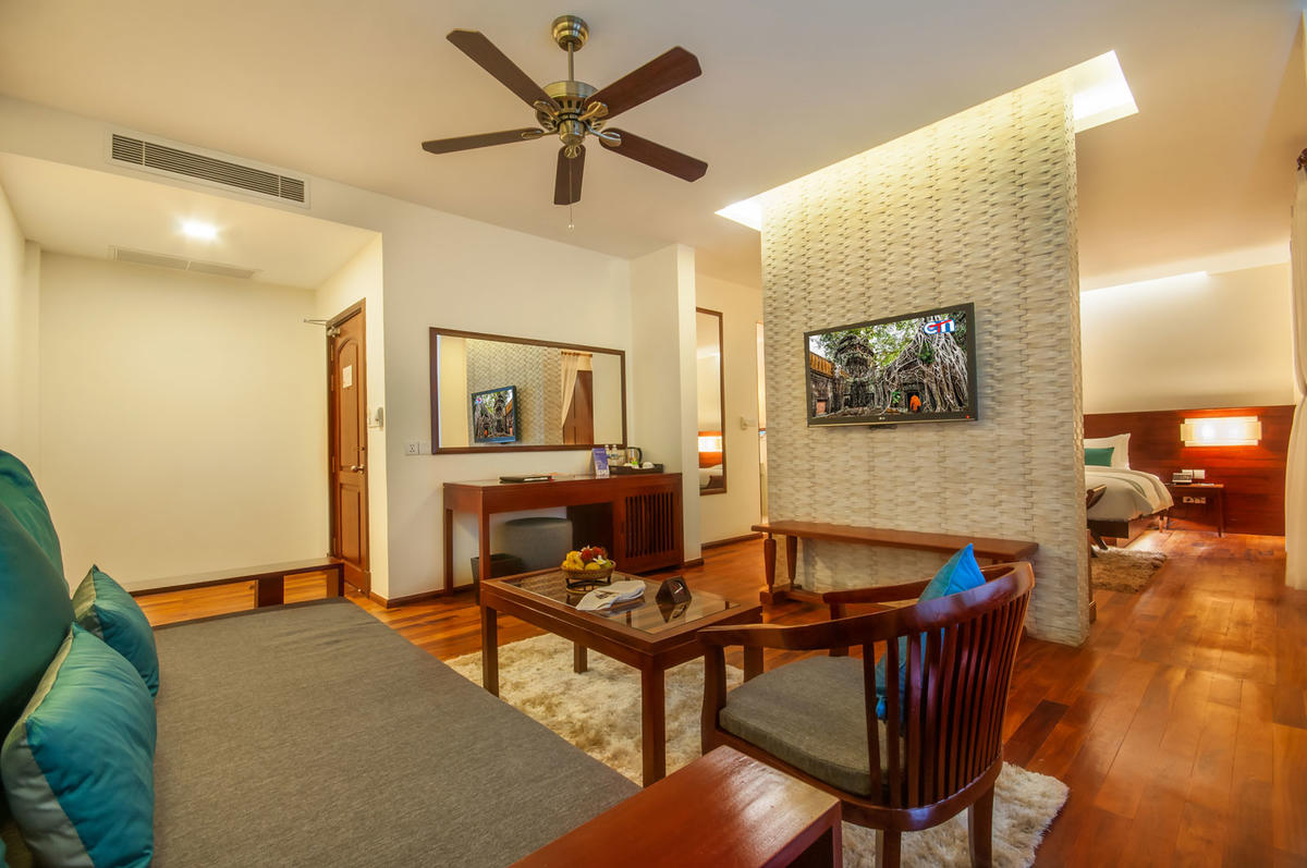 Erholsame Tage verspricht ein Aufenthalt im Lotus Blanc Resort. Alle Zimmer sind klimatisiert und besitzen einen Balkon. Die Zimmer bieten einen Safe, einen Flachbild-TV und eine Minibar. Das Haus verfügt einen großzügigen Garten, in dem viele Kokospalmen für tropische Atmosphäre und Schatten sorgen. Im Pool können Sie entspannen. Im hauseigenen Spa können Sie sich nach langen Tage im Tempelareal von Angkor bei einer Massage verwöhnen lassen. Das Restaurant „Le Blanc“ serviert Ihnen eine Auswahl an traditionellen und internationalen Gerichten. In der Lobby wird am Nachmittag eine High Tea geboten, am Abend schöne Cocktails. WLAN steht Ihnen zur Verfügung.