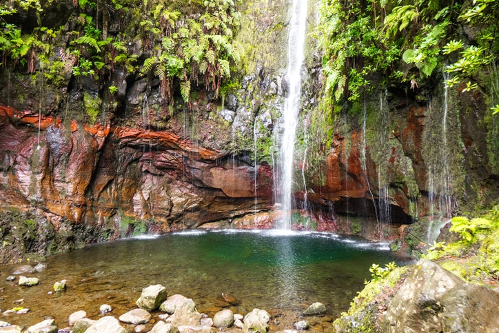 Der Wasserfall entspringt einem kleinen Fluss namens Ribeira da Janela und fällt in eine kleine Schlucht. Das Wasser ist kristallklar und sehr kalt, aber es gibt auch einige heiße Quellen in der Nähe, die Sie besuchen können, wenn Sie möchten.