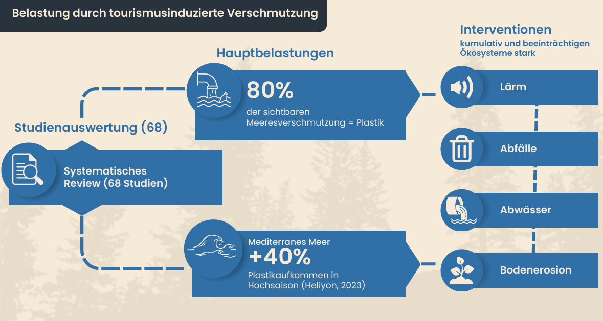 Der IPBES Global Assessment Report aus dem Jahr 2019 verdeutlicht, dass Tourismus zwar wichtige Finanz- und Bildungseffekte erzeugt, jedoch den Haupttreibern des Biodiversitätsverlustes Landnutzungsänderungen, Klimawandel, invasive Arten, Übernutzung und Verschmutzung – keine ausreichend starken Maßnahmen und Effekte entgegensetzen kann¹.