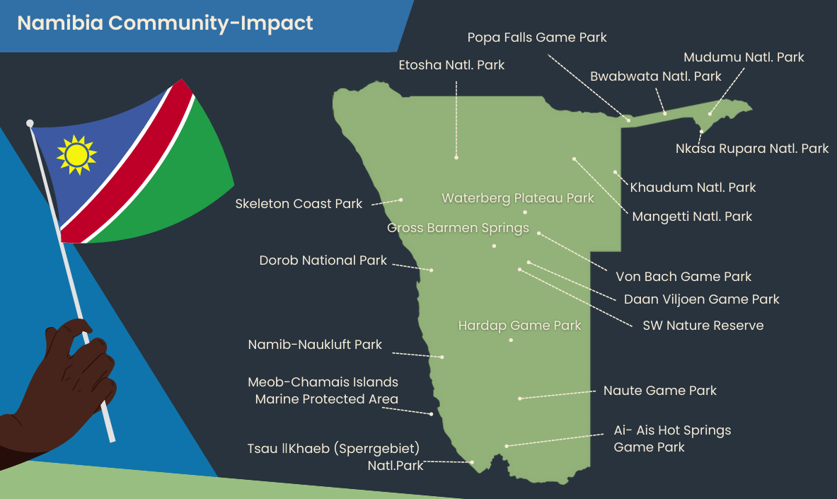 So erwirtschafteten Namibias Kommunalgebiete (Conservancies) im Jahr 2022 Nam$ 103 Millionen (5,9 Mio. US$) an Gesamteinkünften, wobei Joint Ventures im Tourismussektor über 50 % dieser Einnahmen generierten¹.