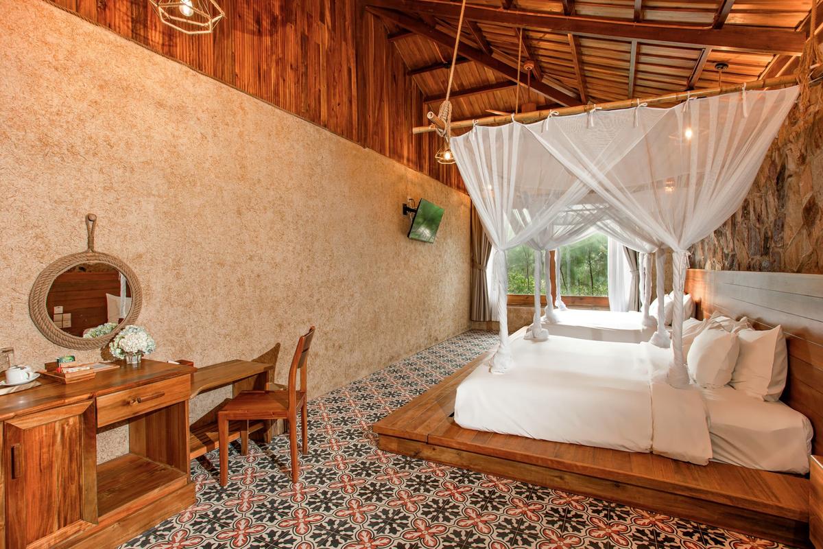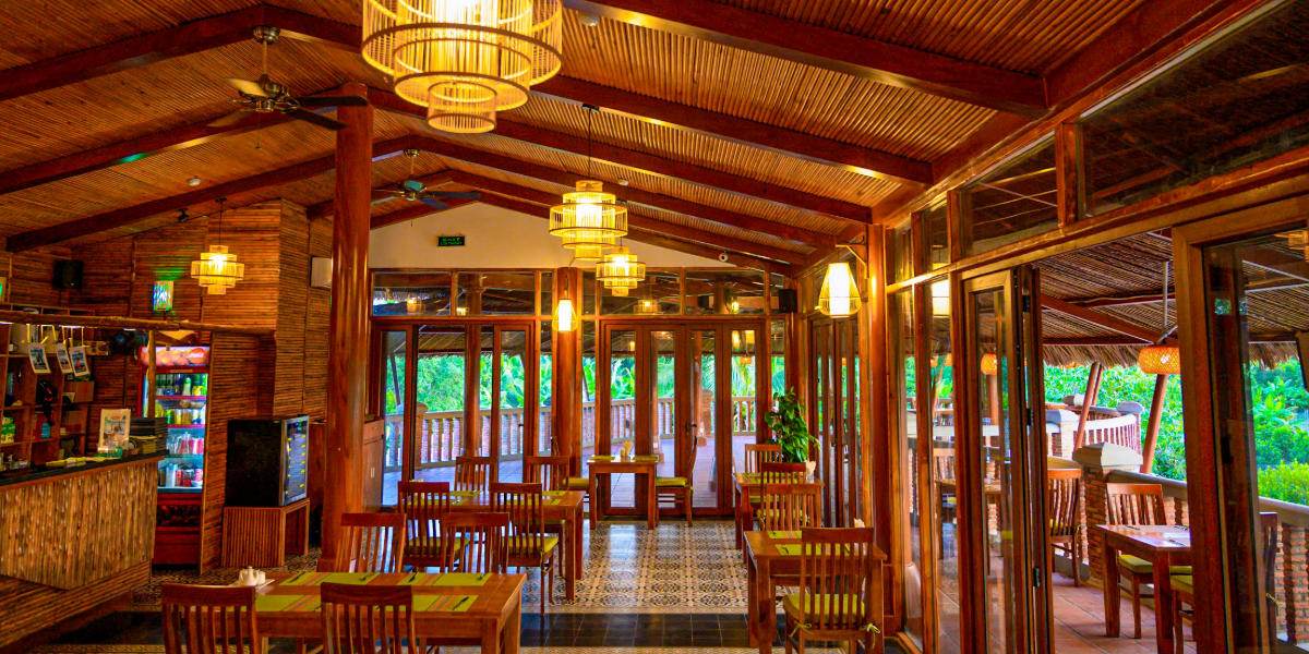 Die Ecolodge verfügt über geräumige und lichtdurchflutete Bungalows, die sich im traditionellen Baustil und mit viel Liebe zum Detail in die Umgebung einschmiegen. Genießen Sie den Ausblick auf tropische Gärten, sattgrüne Reisfelder oder den sich durch die Landschaft schlingenden Fluss – auch gern von der privaten Terrasse Ihres Bungalows bei einer Tasse Tee oder Kaffee oder frischem Obst. Besondere Aufmerksamkeit wird bei der Zubereitung des vielseitigen Speiseangebots auf Frische, Regionalität und Qualität der Lebensmittel gelegt. Verpassen Sie nicht die leidenschaftliche Küche, die diese Ecolodge bietet. Warum nicht selbst einmal an einem Kochkurs teilnehmen? Nach einem Tag voller Erlebnisse können Sie bei einem Getränk am Pool oder einer Massage im Spa Center der Ecolodge ausspannen.