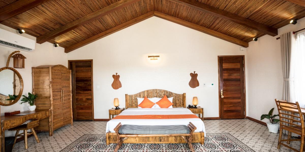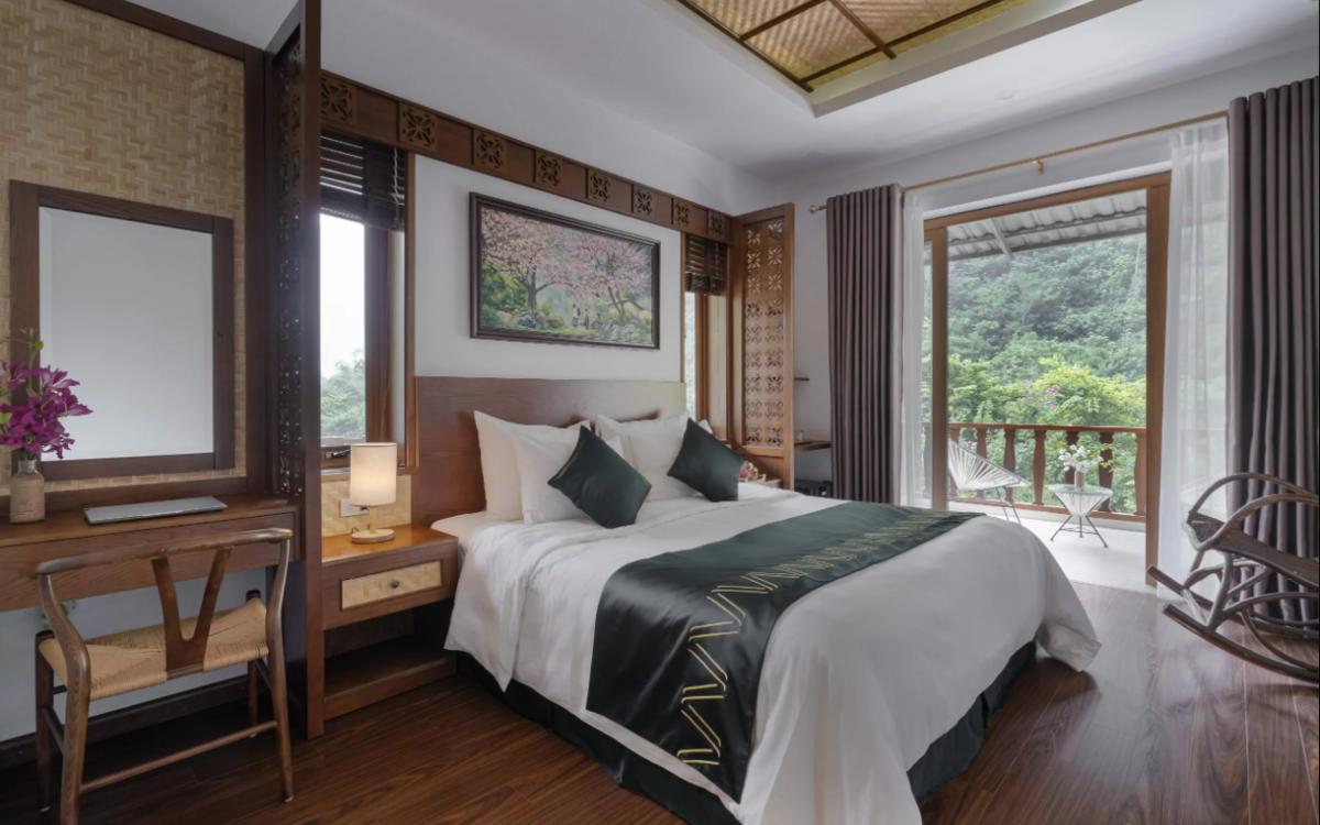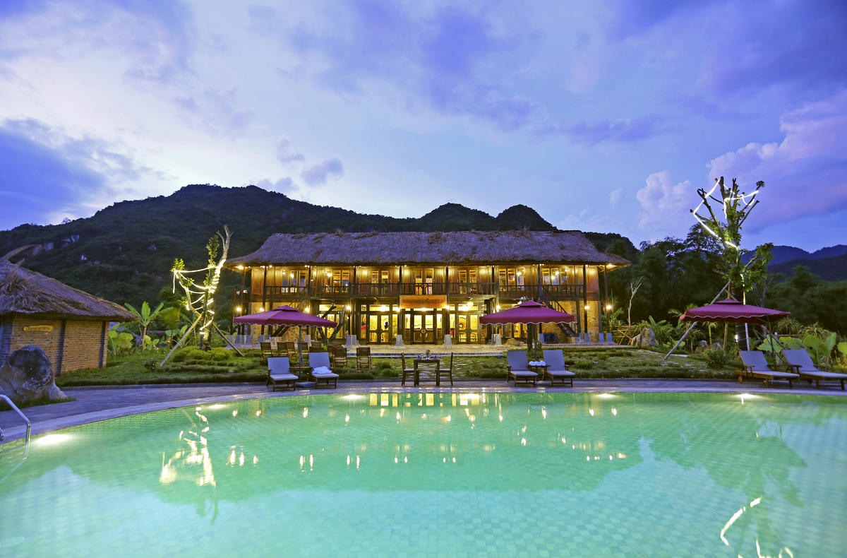 Es ist die erste Anlage der gesamten Region, welche nach ökologischen Richtlinien konzipiert und erbaut wurde. Die großzügigen Bungalows sind vollständig aus Naturmaterialien errichtet, die Dächer mit Stroh und Blättern gedeckt. Die stilvolle Inneneinrichtung besteht aus Holzmöbeln, traditionellen Bodenfließen und auch zu großen Teilen aus schnell nachwachsendem Bambus. Die kleine Anlage zählt 21 Bungalows, gebaut im traditionellen und für die Umgebung typischen Stelzenhaus-Stil. Die Mai Chau Ecolodge verfügt über einen Wellnessbereich sowie einen großen Swimmingpool mit herrlichem Ausblick. Die Lage auf einem Hügel ermöglicht einen weitreichenden Panoramablick in die ländliche Umgebung und in die direkt vor der Tür liegenden Reisfelder. Mai Chau ist bekannt für seine Ruhe, idyllische Natur, die nahen Berge und nicht zuletzt für seine sehr freundlichen Bewohner.
